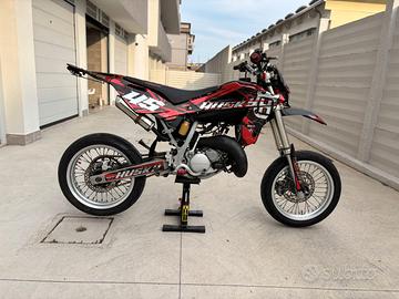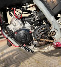 Vendo Husqvarna Sm 125 2t anno 2007 per inutilizzo,la moto si presenta in ottime condizioni,sempre scaldata e utilizzata con cura,è omologata per 2. Moto funzionante, con manutenzione regolare. (Tagliando, filtro, catena, pastiglie e carburazione) Il pistone egli altri componenti hanno all'attivo poco più di 40 ore assieme al pistone sono stati sostituiti cilindro,testa e biella,con componenti nuovi (dispongo di tutti i pezzi cambiati). Monta un kit di grafiche personalizzate (visibili in foto),inoltre possiedo un ulteriore kit di plastiche nere montate per pochissimo tempo (visibili nell'ultima foto) La moto monta: -strumentazione aggiornata -portartarga pieghevole dev&craft -frecce a led anteriori e posteriori -v-face con faro angel eye blu -pedaline in ergal rosse -coprisella Wd-racing rosso e nero -sostituito da poco intero kit trasmissione (pignone,catena,corona) -scarico artigianale derivazione husqvarna cr -tappo serbatoio anodizzato rosso Assieme alla moto cedo anche: -kit di plastiche nero (visibile ultima foto) con parafango yz85 e fianchetti posteriori cr -paramani circuit rossi -specchietto originale omologato -silenziatore originale omologato -faro led -frecce originali -mascherina originale husqvarna -strumentazione originale -pedaline passeggero -portatarga in plastica con faretto posteriore nuovo -paracatena Prezzo leggermente trattabile in quanto la moto funziona correttamente ed è pronta a essere guidata,è sempre stata utilizzata per spostamenti brevi in quanto vivo in città,perfetta per i 16 anni e non solo. Per ulteriori informazioni o foto non esitate a chiedere.