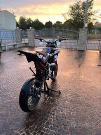 vendo husqvarna sm 125 2004 per passaggio a cilindrata superiore. Motore appena rifatto, ATTUALMENTE IN RODAGGIO con 4 ore. Alla moto sono stati eseguiti i seguenti lavori: -Plastiche full black -Faro Husqvarna nero full led -Batteria nuova -Cerchi verniciati neri -mozzi verniciati viola (da carrozziere) -Manubrio 28mm Stage6 NUOVO -Radiatori Maggiorati NUOVI -Riser manubrio NUOVI -Contaore -Pompa radiale Adelin 16x18 -Disco anteriore maggiorato 320mm -Disco freno posteriore a margherita -Portatarga pieghevole -Specchietti omologati -Frecce microled omologate -Verniciatura forcellone -Grafiche Taurus viola (full cromo holo glitter) -Paraspruzzi in carbonio -Copri accensione in carbonio -varie parti verniciate in tinta -comando frecce semplificato -gas rapido anodizzato multicolor -pedane poggia piedi anodizzate viola -kit viti e copri viti viola - Pedalina accensione TM racing -pacco lamellare vforce 4r -Carburatore Mikuni 34 -Cilindro NUOVO -Pistone NUOVO -Testa del cilindro Husqvarna CR -Terminale SP italian custom con terminale in carbonio forgiato viola -Espansione Fratelli Fresco -Statore e volano accensione NUOVI -Recupero fluidi stampato 3D verniciato -Gomma posteriore al 80%, Davanti 80% -Catena corona e pignone appena cambiati Moto sermpre tenuta bene, in box, sempre pulita. prezzo leggermente trattabile, per info NON ESITATE A SCRIVERMI. no preditempo o sognatori, scrivete solo se veramente interessati ktm, yamaha, fantic, husqvarna yz, sx, xe, exc, tc, tx, cr
