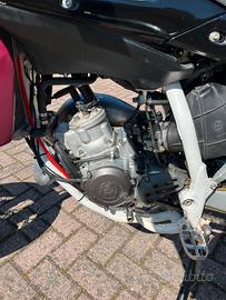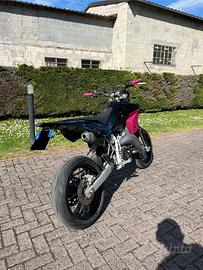 Vendo a malincuore Husqvarna SM 125 2 tempi del 2010 per passaggio ad auto. Moto tenuta in maniera maniacale, sempre custodita in garage e usata con grande cura: sempre fatta scaldare prima dell'utilizzo e mai tirata a freddo. Cambio olio ogni 30 ore. GRUPPO TERMICO NUOVO 5 ORE ?MOTORE (5 ORE DI VITA): * Pistone Wossner monofascia Sez. A (5 ore) * Cilindro NUOVO originale Husqvarna (5 ore) * Valvole originali nuove (5 ore) ?Lavori e manutenzioni recenti: * Revisione completa carburatore Dell'Orto VHST 28 * Sostituzione paraolio lato volano * Impianto di raffreddamento revisionato * Guarnizioni nuove (carter frizione, accensione, pompa acqua, pacco lamellare) * Miscela manuale (miscelatore rimosso) * Gomme Metzeler Sportech M5 Interact (200 km) * Trasmissione DID completa (1500 km - 14/49) * Cassa filtro e filtro fatto a maggio ?Componenti e accessori: * Scarico completo Scalvini * Fianchetti bombati SMR 450 * Parafango Racetech (TM) * Portatarga slim * Convogliatori e faro verniciati * Manopole Circuit ?Documenti e stato: * Omologata 2 posti * Guidabile con patente A1 * Revisione valida fino a 02/2027 * Bollo pagato fino a 02/2027 ?Accessori inclusi: * Bobina + Filo (nuova) * Paramotore Husqvarna in acciaio * Paraspruzzi catena * Parafango Circuit nero/fucsia * Kit getti Polini * Getto minimo Lievi segni su sella, manubrio e codino dovuti dal tempo. Moto pronta all'uso. Passaggio a carico dell'acquirente. Solo realmente interessati, no perditempo, vale la formula visto-piaciuto, prezzo leggermente trattabile e non esitate a contattarmi per info e visione.
