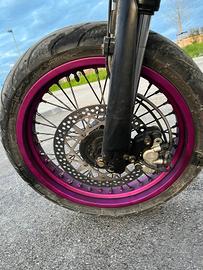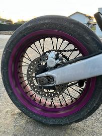 vendo Husqvarna SM 125 2 tempi del 2008 monta: -pacco lamellare v force 4 -carburatore 34 dell orto -espansione Scalvini racing (saldata perché ho fatto un danno sperando di metterla apposto) -filtro Athena -farò anabbagliante funzionante -frecce dietro mancanti -accensione ducati -cilindro originale -valvole elettroniche -centralina dell'orto -omologata per 2 persone -carene nuove dell Husqvarna CR -corona da 50 -pignone da 14