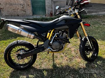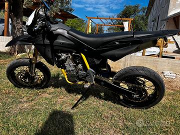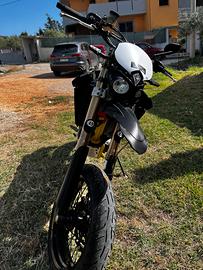 Vendo Husqvarna Sm 510 con allestimento R del 2007 con tripla omologazione. Ultima prodotta a carburatore da casa madre Mv augusta. Sono state fatte tante modifiche tra le quali: revisione totale del motore ( attualmente a circa 4 ore di utilizzo ), verniciatura telaio, forcella posteriore e telaietto posteriore per cambio colore, mappatura centralina, forcella anteriore marzocchi da 50 mm, cerchi EXCEL a camera d'aria, frizione nuova, pompa frizione nuova, impianto frenante con dischi farfallati, tubi in treccia aeronautici anteriore e posteriore, corona 44 denti, catena nuova, motorino avviamento elettronico ducati, impianto elettrico TOTALMENTE nuovo, gomme Metzeller sportec M7 RR DOT 23 e ancora sul 70/80% e altro ancora.