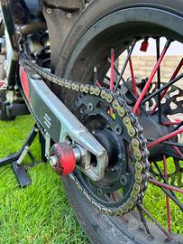 la moto monta kit trasmissione nuovo, gommata a inizio stagione, portatarga omologato, la moto è stata tagliandata completamente e sistemata a nuovo prima dell'inizio della stagione, non presenta alcun problema, disponibile per qualsiasi prova.