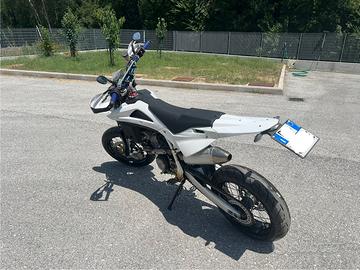 Vendo Husqvarna SM 510 R anno 2010. Depotenziata a libretto, guidabile con patente A2. Appena revisionata e tagliandata. Numerosi lavori eseguiti tra cui pompa acqua, pompa benzina, testata, freni, frizione, batteria, olio forcelle ecc ecc... Gomme nuove. Prezzo trattabile