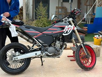 Vendo Husqvarna SM 610 IE con 9372 Km. io sono il secondo proprietario. immatricolata il 01/04/2008 . La moto è stata gommata da poco, ed ha i cerchi nero al posteriore e rosso all'anteriore, revisione valida fino a Luglio 2026, tagliando completo a 9000 km circa compreso di revisione completa forcella anteriore, cambiati pignone e corona in allungo, È stata quasi completamente rivestita da adesivi di grafica particolare con grande logo Husqvarna su entrambi i lati da professionisti del settore. Scarico completo Leovince X3 in titanio. Specchietti, manubrio , manopole,paramani cambiati. Leve freno e frizione regolabili in ergal rosse. Fornisco altri ricambi per aggiornamento moto nuovi ancora da installare del tipo Faro led anteriore, quadro strumenti le, faretti tondi aggiuntivi, frecce led, scarico terminale carbonio. La moto è visionabile a Marsala. Prezzo trattabile, contattatemi solo se realmente interessati grazie.