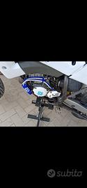 scarico completo scalvini racing paramani acerbis sella rifatta bianche con strisce blu(non è presente in foto),recupero fluidi catena blu, contaore, leva frizione twenty. ora la moto non ha i cerchi montati perché verrano riverniciati di blue e rimontati. prezzo leggermente trattabile o scambio con qualsiasi auto