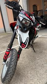 Vendo o scambio bellissima husqvarna sm 610 del 2010 con solo 24400km, moto depotenziata solo a libretto quindi guidabile anche con patente A2,gomma nuova,neanche 500km,frizione nuova, grafiche dedicate, frecce e faro led, scarico leovince omologato ecc , valuto scambi di qualsiasi genere