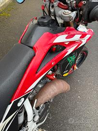 Vendo Husqvarna smr 125 2t edizione hermunen (usciva di serie così) moto SANA perfetta, motore con 0 ore rifatto in officina specializzata (no bimbiminchia in garage) cilindro HTM nuovo, valvole di scarico nuove, ovviamente pistone nuovo, Biella e cuscinetti nuovi, tutto rifatto da zero! Monta scarico scalvini completo (va solo lucidata la pancia) carburatore 34 pwk, pompa freno Adelin abbinata a disco da 320 con Spostapinza in ergal, accensione con doppia mappatura, testa HTM, tubi radiatore in silicone Rossi, corona ergal rossa, GOMME NUOVE, sospensioni rifatte dal sospensionista, pasticche nuove.... Sicuramente dimentico qualcosa ma la moto é perfetta, dovete venire a provarla per capire, SOLO INTERESSATI, le domande idiote le cestinerò
