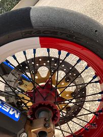 Pneumatici Metzeler racetek supermoto, 125 anteriore e 165 posteriore, da sostituire perché datate ed usurate.