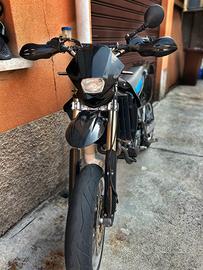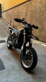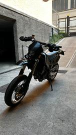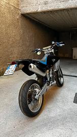 DEPOTENZIATA A2 solo a libretto. Vendo bellissima Husqvarna sm450r anno 2004. Me ne separo a malincuore per motivi familiari e di spazio. Mai uso pista, utilizzata solo in strada ma mai per viaggi lunghi. Iscrivibile ASI o FMI poichè ha già compiuto 20 anni, attualmente già iscritta RIVS. Tagliandata ogni 1000km senza mai trovare brutte sorprese. È un monocilindrico derivazione pista: - Cambio a 6 marce - Avviamento sia elettronico sia a pedalina - Peso a secco 110kg circa - Pinza anteriore radiale Brembo a 4 pistoncini - Pompa radiale Brembo - Disco anteriore Braking Wave 320mm - Disco posteriore Wave + pinze Brembo - Forcelle Marzocchi completamente regolabile - Mono regolabile ( Sia mono che forcelle revisionate meno di 1000km fa) - Forcellone in alluminio - Pneumatici con meno di 1000km usato solo per tragitto casa lavoro. Disponibile a mostrare la moto prima dell'acquisto. Passaggio di proprietà a carico del compratore. Moto con revisione scaduta.