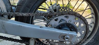 Vendo bellissima Husqvarna SMS 125 a 2 tempi, immatricolata a Marzo 2012 (uno degli ultimi esemplari prodotti dalla casa varesina). La moto è in condizioni estetiche e meccaniche eccellenti, ideale per chi cerca un motard divertente, leggero e con il fascino del motore a miscela. È sempre stata trattata con cura e non è mai stata utilizzata per uso pista o fuoristrada pesante. Caratteristiche principali: Anno: 2012 Motore: Monocilindrico 2 tempi (prestazioni brillanti e sound unico). Ciclistica: Cerchi da 17" motard con pneumatici in ottimo stato. Stato: Completamente originale (scarico, plastiche e grafiche di serie). Manutenzione: Catena, corona e pignone in ordine (come da foto). Motore scattante e pronto all'uso. La moto è guidabile a 16 anni con patente A1. È perfetta per chi vuole iniziare o per chi cerca un pezzo di storia del motardismo. Disponibile per qualsiasi visione. Il prezzo è leggermente trattabile solo dopo visione. No perditempo o offerte ridicole.