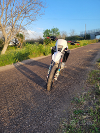Husqvarna sms 125 4t 2011. Moto senza alcun difetto, mai incidentata, motore affidabilissimo con consumi molto ridotti. Nessuna perdita di olio o di liquido refrigerante. Nessuna modifica apportata (completamente originale). Catena corona è pignone cambiati da 2000km e tagliando completo da meno di 1000km. Con la moto sono compresi alcuni accessori originali (come parafango ant. originale e portatarga). Omologata per 2 . Vista e piaciuta. Trattabile. Contatti con messaggi qui o sul cell