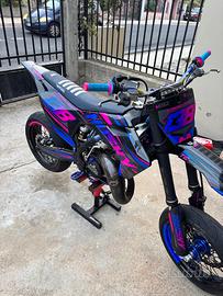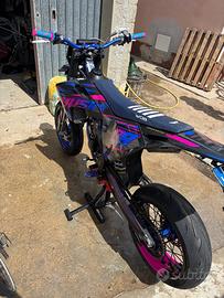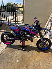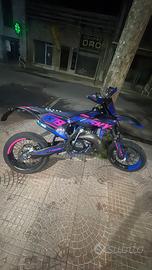 Vendo Husqvarna Tc 125 2018 (modello cross) fatto immatricolare a giugno 2024,revisione valida fino al 2028. La moto ha 50 ore di pistone Gomma posteriore appena montata Gomma Anteriore al 60% Impianto elettrico semplificato energy sistem Disco e pastiglie appena cambiati monta tante chicche come: Impianto di scarico completo JSV, disco 320mm con relativo sposta pinza, leve in ergal,pedane blu,leva cambio e pedale freno blu,paramani,riser manubrio blu, manubrio protaper blu, svariate viti ergal/titanio vero acquistate su "ProBolt" ',dadi in ergal vari,copri accensione coperchio valvola e slider pedane in 3d (non presenti in foto), sella wob design, grafiche full glitter,cerchi bicolor,portatarga pieghevole,tamponi ruota posteriore, parafango hsq fs450 graficato (ho anche quello originale nero e bianco), tabella portanumero graficata dei modelli 2024 (ho anche quella originale bianca e nera) ecc. In più cedo anche silenziatore hgs blu anodizzato,pancia e silenziatore scalvini,plastiche bianche originali. sospensioni tarate motard Moto sempre tagliandata a 15h Tenuta da amatore Per altre info e prezzo contattarmi