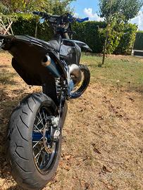 Altre foto e delucidazioni in privato .La moto ha circa 2000 euro di accessori in quanto monta polmone fmf terminale hgs. Paramani pedane e leve in ergal blu. Dispongo ache dello scarico completo originale. . Piastra ammortizzatori marca Geco. Tripla omologazione motard cross enduro.. Impianto elettrico per circolazione su strada. Prezzo 7500