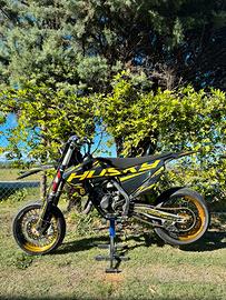 La moto monta uno scarico completo HGS con incisione a laser sul terminale con logo HUSQVARNA.