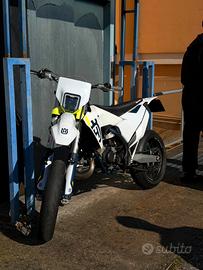VENDO HUSQVARNA TC 125 La moto è stata acquistata cross e trasfotmata motard installando -cerchi faba -metzeler racetech rr k3 -pompa accossato 16x18 (NUOVA) -tubo in treccia accossato carbon look -disco 320mm nuovo -pastiglie motomaster nuove inoltre la moto è appena stata immatricolata da SP ITALIAN CUSTOM GARAGE monta anche silenziatore hgs e svariati pezzi in ergal blu. Il blocco è appena stato rifatto e ha circa 25h all’attivo, è stato sostituito anche l’albero motore con uno wossner. Le forcelle presentano delle cartucce ad olio “dal soggio” (circa 1k€ di cartucce) e kit di testa e valvola di scarico DOMINICI