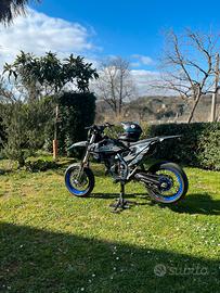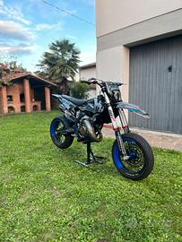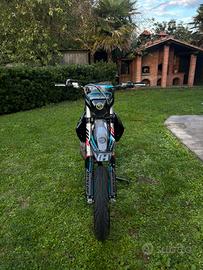 Vendo a malincuore Husqvarna TC 125 del 2022 per passaggio a cilindrata superiore. La moto possiede le gomme da strada e da cross/enduro con triplice omologazione stata effettuata il 01/01/2023 (strada/enduro/cross). Prima di tutto la moto è stata immatricoalta nel 2023 quindi anche se è del 2022 fino al 2023 non ha circolato ne in strada ne in pista, la moto ha 190 ore totali ed a 150 ore è stato rifatto pistone e biella con dimostrazione di fattura. La moto è sempre stata tenuta in modo maniacale, mai esposta a pioggia o umidità e sempre tagliandata alle ore descritte dalla casa madre. La moto monta: -Grafiche compelte Slickdesign -Pancia fmf -Terminale pro-circuit r304 -Corona in ergal blu -Pignone JT -Cerchi faba con mozzo blu -Disco freno ant. motomaster flame da 320mm -Gomme michelin 160/60/17 -Faro a led -Sella della valle nera -Possiede la preparazione forcella e mono per supermoto VM -Gomme originali husqvarna da enduro/cross usate per 3/4 uscite. Per foto in piu scrivetemi o contattatemi 3208562389. No perditempo.