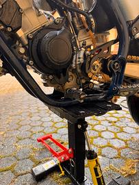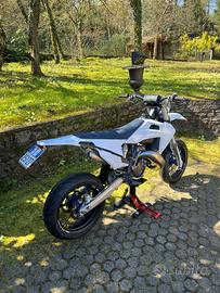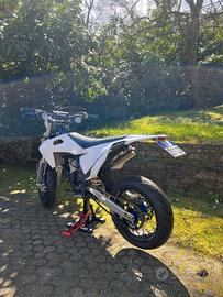 Vendo moto in condizioni impeccabili, tenuta in modo maniacale, sempre lavata e con manutenzione regolare, con 90 ore totali da originale e mai caduta. La moto monta cerchi Faba da 17” con mozzo blu e niples blu, cambio elettronico SP e kit di plastiche composto da una nera con grafiche, una bianca senza grafiche e le originali. È dotata di leva frizione NRTeam e scarico HGS (pancia da sistemare, non visibile in foto ma disponibile su richiesta), inoltre dispongo anche dello scarico originale. L’impianto frenante è stato aggiornato con sposta pinza Motomaster e disco da 320 mm e le pastiglie sono state appena cambiate. Monta gomme Pirelli Diablo Rosso 3 nuove (posteriore 160 e anteriore 120) e includo anche cerchi originali da cross con gomme. Manopole appena cambiate, faro originale per immatricolazione e moto targata. Moto davvero in condizioni eccellenti, pronta all’uso, per qualsiasi informazione o ulteriori foto non esitate a contattarmi. Prezzo trattabile