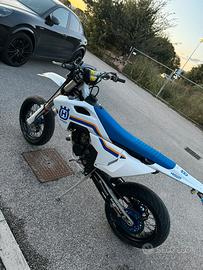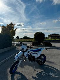 Vendo Husqvarna tc 125 del 2023 allestimento heritage, dotato di tripla omologazione convertito a motard, cerchi faba tubless con mozzo blu. Monta scarico completo HGS con silenziatore blu elettrico, in dotazione do anche cerchi e ruote originali da cross e scarico originale. La moto ha 140 ore totali e il pistone è stato rifatto 50 ore fa. Prezzo Trattabile