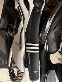 la moto è in ottime condizioni con 24.3 ore totali, insieme cedo paramani racetech nuovi, copri sella nuovo appena sostituito (insieme cedo quello originale blu in perfette condizioni ),corona sunstar nuova mai utilizzata , insieme cedo filtro aria twin air nuovo ancora nella confezione originale , paramotore acerbis nero , kit plastiche bianco , pompa forcelle wp nuova, chiave stringi raggi originale husqvarna e una mousse posteriore michelin.