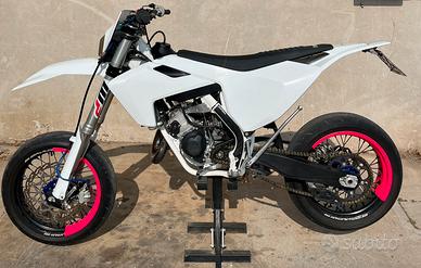 Vendo bellissima husqvarna tc 125. Moto trattata come si deve, unico proprietario, tagliandata ogni 10 ore, utilizzata per giretti nei weekend estivi. Rifacimento completo del motore con pistone, biella, cuscinetti eccetera da 68 ore, nell'arco di queste ore sono state revisionate anche forcelle e mono. Tutti i lavori sono stati eseguiti da Italparts, preparatori ufficiali husqvarna, no lavoretti fai da te come si vede spesso su queste moto, possiedo tutte le fatture. Mai dato problemi, gira alla perfezione. La moto monta scarico completo hgs, carter frizione Boyesen, plastiche, manopole e comando gas nuovi appena montati, coprisella Selladellavalle, cerchi SM pro platinum di altissima qualità (1200€ di soli cerchi), l’adesivo bicolore fucsia sui cerchi è ovviamente rimovibile, porta targa pieghevole VMracing e altri dettagli. Assieme alla moto cedo i cerchi da cross per divertirsi anche in fuori strada e scarico originale. No perditempo e offerte ridicole, non ho fretta di venderla. Prezzo trattabile alla visione.