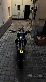 Vendo Husqvarna tc del 2018 (a carburatore) con la tripla omologazione (enduro, cross e motard) la moto attualmente ha 0 ore con il motore appena rifatto e il cilindro comprato nuovo (il pistone è il vertex bifascia race da 150?), terminale procircuit shorty r304, kit completo motard excel importato dal giappone, disco anteriore da 320mm, faro led, stop posteriore nero, frecce dinamiche e portatarga pieghevole. La moto monta leve e pedaline in ergal blu (do anche le oroginali), paramotore acerbis e inoltre possiendo anche il kit da cross sempre excel total black e le plastiche originali bianche husqvarna.