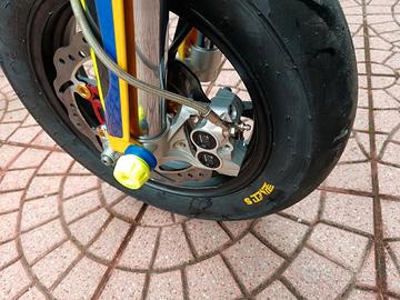 Sospensioni rifatte da sospensionista, cerchi vmc con gomme nuove, pinza freno 8.1, pompa freno formula, piastra paramotore, vaschetta recupero liquidi, strumentazione con contaore e temperatura acqua,tubi acqua in silicone, pedane rialzate in cnc, tutte le plastiche nuove con sella nuova originale trasmissione con passo 420 nuova, olio cambio nuovo, filtro aria nuovo