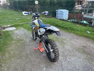 Vendo a malincuore Husqvarna TE 125 del 2014 per passaggio a cilindrata superiore. La moto ha 9300 km, usata in strada e in enduro a livello amatoriale, sempre tenuta al chiuso e svolta manutenzione ordinaria. Mai avuto problemi di alcun tipo, sempre usata con correttezza, presenta alcuni segni dati dall'uso nel bosco (es. pancia bombata, anche se ne fornisco un'altra mai usata), mai avuti problemi di motore, pistone cambiato da 80h. La moto ha 280h totali. La moto monta gomme al 90%, dischi freni cambiati da 50km. Fornisco anche: - Seconda pancia - Plastiche - Grafiche - Paramani (nuovi) - Sella e copri sella E altri pezzi come in foto Prezzo trattabile