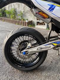 Vendo husky te 2016: - kit motard con cerchi excel e gomme pirelli rosse (moto non omologata motard) - kit enduro - fmf shorty - corona e pignone nuovo appena cambiati - pistone cambiato ogni 60/70 ore