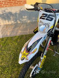 Vendo husqvarna te125 anno 2016, moto con 190 ore totali di telaio, usata per enduro tranquillo, mai gare o giri estremi, sempre eseguita tutta la manutenzione necessaria. Monta svariati accessori e powerparts, come visibile in foto, espansione fmf, forcelle revisionate e preparate. Di recente è stato eseguito cambio pistone, tagliando completo e montato disco pieno al posteriore. Gomma anteriore metzeler nuova appena montata. Assieme alla moto cedo svariati ricambi, kit di plastiche e tutto il kit specchietti/freccie ancora imballati originali huaqvarna, assieme a tutti i manuali ufficiali consegnati all'aquisto in concessionaria. Unica pecca come si nota in foto, è il para espansione in carbonio graffiato poiché comprato usato già così, difetto puramente estetico chiaramente (sotto la pancia è perfetta). All'occasione sono disposto a montare/smontare dei componenti, se richiesto. Moto omologata e targata guidabile con A1 già dai 16 anni. Prezzo leggermente trattabile, non esitate a contattarmi per maggiori info o visione di persona. ktm exc 125 tm