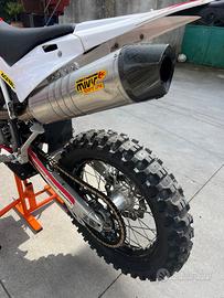 Vendo come da titolo moto da enduro Husqvarna te 250 targata. Monta terminale di scarico mivv, revisione valida fino a marzo 2028, bollo pagato, tagliando eseguito con sostituzione freni anteriori e posteriore, olio freni, olio motore, filtro, revisione forcella e forcellone, sostituzione catena, corona, pignone, gomma posteriore.