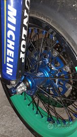 Ruote da enduro complete di mousse (dietro sia musse che gomma nuova), doppie plastiche, alcuni pezzi in carbonio, doppia sella, espansione fresco e tutti i pezzi originali con impianto elettrico e frecce.