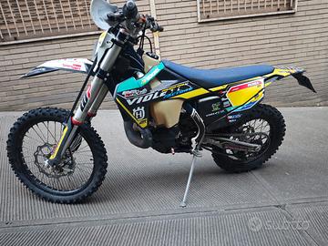 moto con 300 ore, a 200 è stato fatto il pistone, mai avuto problemi, a 200 ore ho fatto anche la modifica da tpi a tbi e funziona bene, gira più lubrificata e si percepisce perché la ventola attacca molto raramente da quando ho apportato questa modifica. ho le sue plastiche da parte, la pancia originale (oltre a quella montata che ha qualche botta ma la devo fare gonfiare). trasmissione con 50 ore. presenta normali segni di usura da enduro ma non ha difetti. è regolarmente in uso. prezzo trattabile