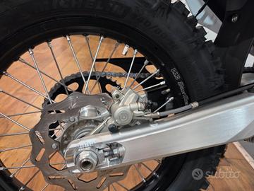 HUSQVARNA TE 300 2026 Nuova da immatricolare Finanziamento a tasso agevolato Possibilità di Spedizione in tutta Italia Conosciuta in tutto il mondo come una macchina eccezionalmente capace, soprattutto nel mondo dell'enduro duro, la TE 300 stabilisce un punto di riferimento per le prestazioni offroad. Con un motore leader della categoria alimentato da iniezione a corpo farfallato (TBI) per una potenza controllabile, il versatile modello è in grado di affrontare con facilità le salite più difficili. Ad aiutare l'esperienza di guida ci sono le morbide sospensioni WP Suspension che, insieme a una ciclistica moderna e conforme, offrono il massimo comfort su tutti i tipi di terreno. A bordo della TE 300, potrai esplorare dove pochi sono andati prima. Dettagli tecnici Motore Trasmissione primaria 26:72 Cambio 6 marce Capacità della batteria 2 Ah Raffreddamento a liquido Avviamento Starter elettrico Corsa 72 mm Alesaggio 72 mm Frizione DDS multidisco in bagno d'olio, comando idraulico Brembo Cilindrata 293.2 cm³ EMS Sistema di gestione del motore Vitesco Technologies Costruzione 1 cilindro, motore a 2 tempi Alimentazione Iniezione elettronica Keihin, corpo farfallato 39 mm Ciclistica Peso (senza benzina) 106.8 kg Capacità serbatoio (circa) 8.5 l Interasse 1489 mm Diametro disco freno anteriore 260 mm Diametro disco freno posteriore 220 mm Catena X-ring 520 Costruzione telaio Telaio a traliccio centrale con doppia culla acciaio 25CrMo4 Sospensione anteriore Cartuccia WP XCAT Ø 48 mm Altezza minima da terra 343 mm Manubrio Pro Taper, alluminio Ø 28/22 mm Sospensione posteriore Ammortizzatore WP XACT con leveraggio Altezza sella 952 mm Silenziatore Alluminio Inclinazione cannotto di sterzo 63.9 ° Costruzione telaietto posteriore Poliammide rinforzato in alluminio Escursione anteriore 300 mm Escursione posteriore 300 mm Dimensioni pneumatici (anteriore/posteriore) 90/90; 140/80 Ruote 1.60 x 21"; 2.15 x 18" Ruote Ruote a raggi con
