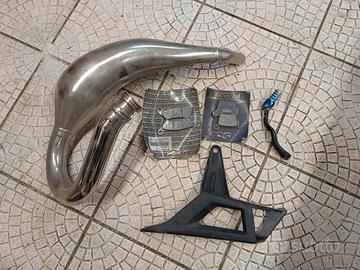 Vendo per inutilizzo. Moto perfettamente funzionante qualche segno di usura. Vendo anche kit plastiche, kit anteriore e posteriore pastiglie freni, pancia originale, kit per carburazione (spillo, getti) e altri componenti. Gomma anteriore al 60% con camera d'aria rinforzata, gomma posteriore al 80% con mouse durezza media. Moto monta ventola supplementare per radiatori. Prezzo trattabile