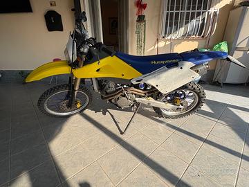 Come da titolo vendo husqvarna te 410 2003 targato !. Appena eseguiti i seguenti lavori ; - rifacimento del pistone da 3 pieni - ricromatura cilindro - gruppo frizione - kit trasmissione - revisione forcelle anteriori - revisione leve raggio - ricromatura cerchi - cambio tutte le leve e manopole - tagliando completo con motul 300v Da risistemare qualche plastica , per il resto la moto va in moto al primo colpo SCAMBIO solo con moto stradale !! Prezzo leggermente trattabile ! No perditempo solo intenditori e veri interessati! Insieme alla moto cedo anche gomme motard utilizzate quasi mai !