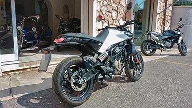 Anno: 2024 Chilometri: 204,5 Cilindrata: 125 Questa è un'occasione imperdibile direttamente dal nostro showroom! Proponiamo Husqvarna Vitpilen 125 modello 2024, immatricolata come moto demo con soli 204 chilometri all'attivo. La moto è praticamente nuova, priva di segni di usura e pronta per la consegna immediata. Il modello 2024 rappresenta un salto generazionale totale rispetto al passato: nuovo telaio, nuova ergonomia e un pacchetto tecnologico da "grande". Perfetta per i sedicenni con patente A1 o per chi cerca una urban roadster stilosa, leggera e agguerrita. Dati Tecnici: - Motore: Monocilindrico 4 tempi, 125cc, raffreddato a liquido (Omologazione Euro 5+). - Potenza: 11 kW (15 CV) - il limite massimo per la patente A1. - Cambio: 6 marce con Easy Shift (Quickshifter bi-direzionale) di serie. - Tecnologia: Nuovo display TFT da 5" con connettività smartphone e comandi al manubrio retroilluminati. - Ciclistica: Nuovo telaio a traliccio in acciaio e forcellone in alluminio pressofuso. - Sospensioni: Forcella WP APEX da 43 mm a cartuccia aperta e monoammortizzatore WP APEX. - Freni: Impianto ByBre con disco anteriore da 320 mm e Cornering ABS Bosch 9.3 MP (con modalità Supermoto disinseribile al posteriore). - Altezza sella: 820 mm (migliorata per un accesso più facile a terra). - Peso: 147,5 kg (a secco). - Pneumatici: Michelin Power 6 di primo equipaggiamento. Possibilità di finanziamento personalizzato.