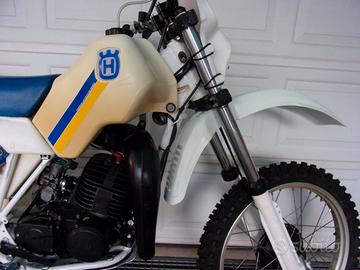 Vendo per inutilizzo husqvarna 250 wr modello 1984 ,immatricolata 10/1983 , targa e documenti originali di prima immatricolazione per passaggio proprietà , iscritta registro storico FMI , estetica ripristinata con sabbiatura e verniciatura a polvere telaio e scarico , silenziatore reso ispezionabile , fiancatine nuove originali , sospensioni ant. e post. revisionate , zincatura particolari metallici , adesivi nuovi , paramotore e carter accensione in alluminio , sostituiti altri particolari telaio e motore nuovi di cui ho tutte le fatture , con la moto consegno anche seconda ruota posteriore di scorta , alcune plastiche e ricambi originali usati di scorta , posso fornire altre foto di particolari a richiesta , posso consegnare con revisione biennale effettuata .