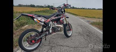 La moto non é omologata ne omologabile come Motard (in Italia), ed é sempre stata utilizzata come tale. 5 marce di ignoranza pura, unica nel suo genere. Prezzo poco trattabile. Lo scarico originale/omologato non è presente.