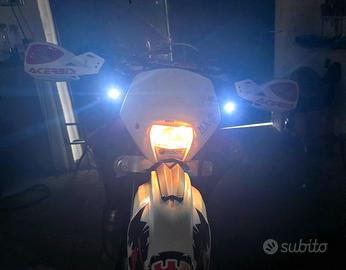 Vendo Husqvarna Wre 125 cc per inutilizzo, causa passaggio ad altra moto. Regolarmente tagliandata ogni 30 ore, sempre mantenuta su cavalletto alzamoto ed accesa regolarmente. Gomme Michelin Enduro Medium al 90% Scarico completo Arrow Motore revisionato con pistone maggiorato Faretti LED aggiuntivi anteriori Divertentissima da guidare Bollo in regola Forcelle revisionate a novembre 2025 dimostrabile con fattura Regalo cavalletto Revisione scaduta a Luglio 2025 (se interessati posso provvedere io ad eseguirla prima della vendita) NO PERDITEMPO, CONTATTARE SOLO SE REALMENTE INTERESSATI