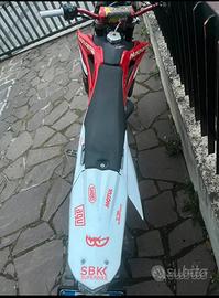Propongo questa bellissima Husqvarna Wre/Wr anno 2013 ultimo anno di produzione. Acquistata circa 2 anni fa. Prezzo 2800€??? Cosa monta: Carburatore 38 kheinin Pacco lamellare V force 4r Silenziatore HGS Faro polisport E-blaze bianco Parafango Yamaha Yz 125cc Pastiglie all' 80% Cerchi neri lucidi con ruote enduro sostituibili con quelle cross. Plastiche originali. Miscelatore rimosso ma facilmente riapplicabile. Filtro aria nuovo 15 ore di utilizzo. Frecce sostituite con una tipologia più piccola. PACCO FRIZIONE nuovo. Tendicatena polisport. Ultimi lavori effettuati: Sostituzione pacco frizione (dischi piatti e sugherati +molle e olio motore Motul ovviamente la cedo già tagliandata. A 21000km Rettificato cilindro+ sostituzione pistone e saldatura molto dispendiosa dell'alberino interno dopo la rottura interna di un cuscinetto che ne ha causato la rottura. Sostituendo anche tutte le guarnizioni presenti blocco + ecc E kit revisione para olio. Carburazione con sostituzione getti. Cedo anche molte altre parti originali. Per altre info contattarmi.