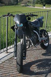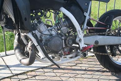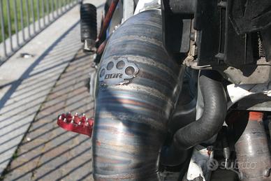 Vendo husqvarna 125 wre/sm per passaggio a cilindrata superiore. La moto monta: -kit testa + basetta HTM racing; -cilindro HTM racing; -pacco lamellare Vforce 4r; -carburatore polini pwk 34; -biella trm carnago ricavata dal pieno; -carter lavorati; -scarico dbr completo calcolato 144; -pistone HTM racing monofascia con 20h; -batteria nuova. Il blocco è stato rifatto completamente con lavorazioni ai carter a febbraio 2025 e al momento ha circa 40-50h. Riguardo all'estetica monta: -Manubrio PBR rosso; -paracolpi Neken; -leva del cambio rossa; -manopole domino rosse; -tappo rabbocco olio rosso; -kit plastiche nere; -faretto angel eye con anello rosso; -portatarga Gtlab pieghevole etc... Dispongo anche di tutti i pezzi originali (eccetto pancia scarico) e di cerchi enduro gommati stradali (tutto compreso nel prezzo). Le gomme attuali sui cerchi motard sono delle diablo rosso 3 e sono al 70% di vita. Per qualsiasi info o altre foto scrivermi.
