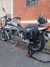 bellissima moto Hyosung Acquila GV 650 del 2006 tenuta in modo maniacale, sempre tagliandata e certificata ogni due anni ultimo appena fatto come da foto, con pochissimi Km sempre tenuta al coperto ha girato solo nei periodi estivi moto pari al nuovo come si può vedere dalle foto cromature perfette motore potente una custom con la potenza di una moto da corsa 71 cavalli 200 km orari da 0 a 100 in meno 10 secondi alte prestazioni, non è una moto per ragazzi né per neopatentati, solo amatori e persone esperte, Tutti i pezzi sono originali anche il cupolino e gli specchietti marcati hyosung insomma una gran bella moto pronta a viaggiare. A corredo alcuni pezzi di ricambio tipo manopole interruttori e un ammortizzatore in più il cavalletto centrale che vedete in foto, il prezzo tiene conto dei lavori e di come è tenuta la moto non trattabile.