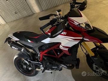 Hypermotard in perfette condizioni con scarico SC omologato, acquistato nuovo e con poco più di 1000 km di percorrenza. Da circa 2000 km è stato effettuato tagliando presso officina Ducati: cambio olio e filtri, sostituzione di tutte le cinghie compresa quella di distribuzione, cambio pasticche e sostituite le gomme con Pirelli Rosso 4. Effettuata da Lenci moto Roma, la rimappatura della centralina. Per qualsiasi informazione, purchè seriamente interessati, sono a disposizione. Prezzo non trattabile.