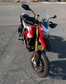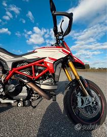 Vendo Ducati Hypermotard 939 sp, desmo service appena effettuato in officina Ducati (dimostrabili con fattura), sostituzione candele, kit catena e pasticche anteriori/ posteriori,nessun graffio, nessuna caduta. La moto è dotata di scarico alto SC Project, con porta targa e frecce ligtech.