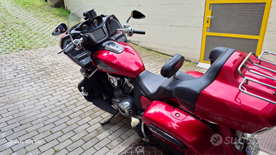 Moto perfetta tagliandata Indian e cinghia di trasmissione nuova. Accessori: bauletto originale con kit audio, fari supplementari originali a led, poggia schiena, manopole scaldabili, specchietti Indian speciali, portapacchi sul bauletto, piastra after market che arretra posizione bauletto, parabrezza con profilo ricurvo, para piedi originali per inverno in pelle, para borse posteriori, serrature per le tasche della carena, filtro aria K&N, eventuale sella Saddlemen con poggia schiena, manubrio originale arretrato.