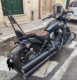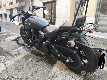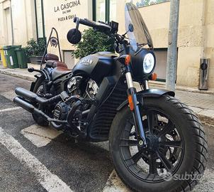 Indian Scout Bobber anno 03/2018 colore Nero opaco unico proprietario con soli km 23000. Veicolo pari al nuovo di carrozzeria e meccanica completamente originale in ogni sua componente tagliandato sempre presso officina autorizzata. Motociclo accessoriato di Pedane anteriori comfort- Pedane Posteiori- Sellino Passeggero-Schienale Sissi Bar Indian- Cupolino Anteriore- Specchi retrovisori bassi- Scarichi Freedom da 4 pollici- Borsa laterale originale Indian.