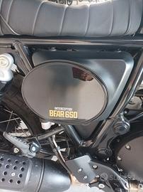 Royal Enfield Bear 650 Golden Shadow, Moto aziendale in condizioni eccellenti. Bicilindrico 648cc, 47 CV, ideale per strada e leggero fuoristrada. Linea moderna, fari full LED, display TFT con connettività smartphone, ABS a doppio canale. Moto affidabile, comoda e perfetta per chi cerca uno stile scrambler con ottime prestazioni e bassi consumi. Disponibile per visione e prova, presso la sede di Maida