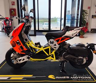 Design Sportivo e Innovativo: Il telaio a traliccio in acciaio al cromo-molibdeno conferisce robustezza e leggerezza allo scooter, mentre il look dinamico e aggressivo è perfetto per chi ama distinguersi. Le ruote da 12 pollici offrono stabilità, mentre le linee fluide e aerodinamiche evidenziano il carattere sportivo del modello.