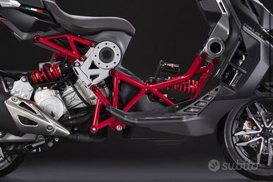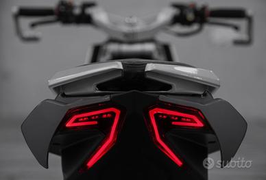 L'Italjet Dragster 200 rappresenta un'interpretazione audace e innovativa nel segmento degli scooter sportivi. Con il suo design aggressivo e futuristico, questo modello è equipaggiato con un motore monocilindrico da 200 cc, capace di erogare 19,8 CV. Raffreddato a liquido e dotato di iniezione elettronica, il propulsore offre prestazioni adatte sia all'uso urbano che a tratti extraurbani, garantendo una guida dinamica e scattante. Il telaio a traliccio in acciaio, abbinato al sistema di sospensione anteriore a quadrilatero deformabile brevettato, è uno degli elementi distintivi del Dragster, progettato per migliorare la stabilità e la precisione di guida, anche nelle curve più impegnative. Il sistema frenante con freni a disco da 240 mm all'anteriore e al posteriore, dotati di ABS, completa la dotazione tecnica di questo scooter dall'anima corsaiola. Il Dragster 200 si distingue non solo per le sue prestazioni, ma anche per il suo look radicale e avveniristico, con dettagli come le ruote a raggi e i componenti in fibra di carbonio che ne esaltano il carattere sportivo. Ideale per chi cerca uno scooter fuori dagli schemi, capace di farsi notare e offrire emozioni su strada.