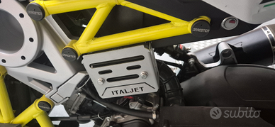 Con scarico completo acrapovic - specchietti - coperchi vaschetta liquido freni - coperchio tappo benzina - copertura centralina - pedane in alluminio - gancio porta borse - copri posto posteriore con guscio con alette (team gresini)